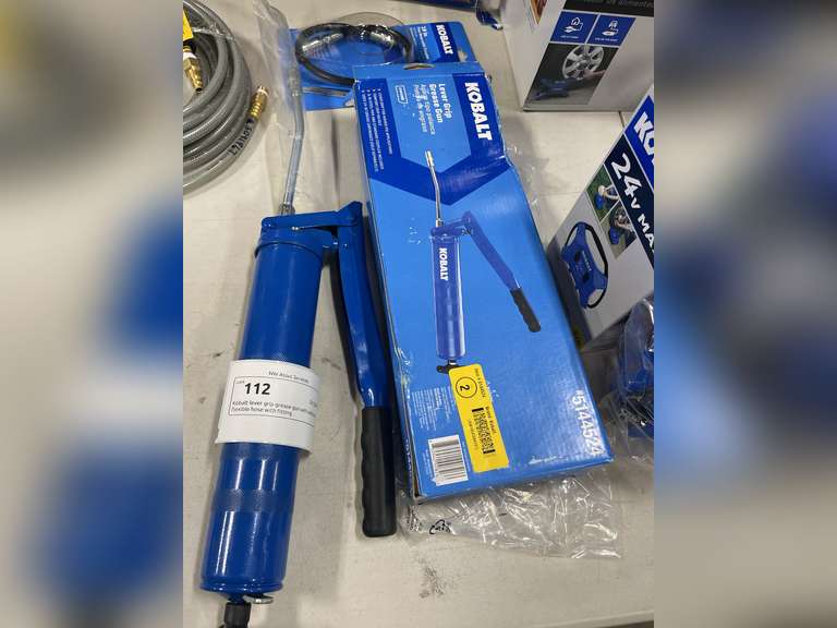 LOT 112 - Kobalt Lever Grip Grease Gun with Additional Flexible Hose with Fitting **Like New/Lightly Used/Complete**