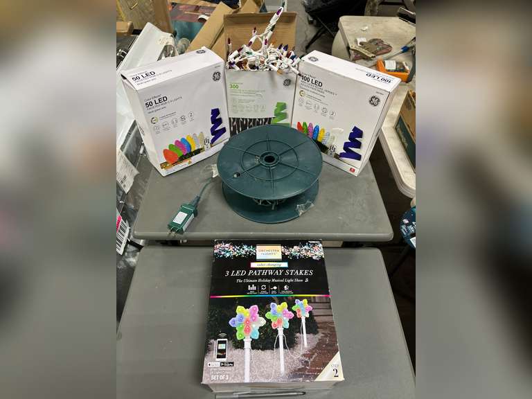 LOT 168 - 4 Boxes of Christmas Lights/Decorations/Lights Reel/2 7 Ft Light Up Trees **Unchecked/Untested**