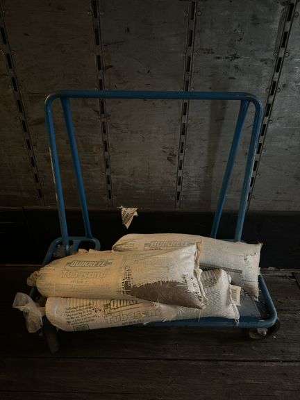 LOT 427 - Material/Drywall Cart on Casters w/ (4) Bags of Quikrete Tubesand - Blue