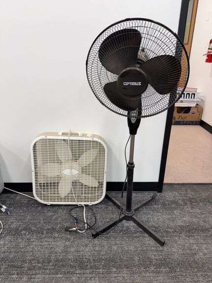 LOT 604 - Lasko Box Fan & Optimus Pedestal Fan