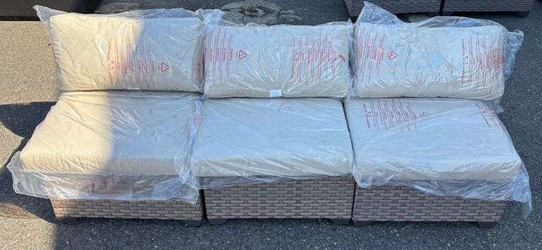 Includes (3) Patio Sofa Pieces and (6) Corresponding Vanilla Cushions