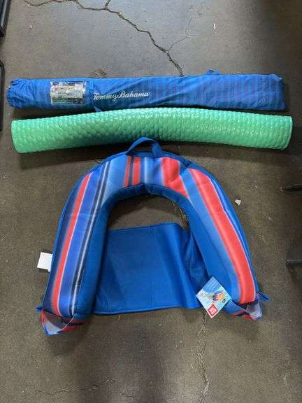 LOT 90 - Tommy Bahama Collapsible Umbrella / Noodle Sling Chair / Pool Noodle