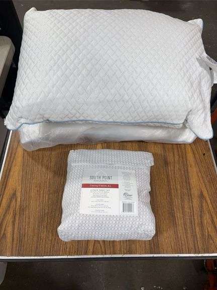 LOT 119 - (2) PureLux Queen Memory Foam Cooling Pillows & South Point Home Fashions Twin XL 4 Pc Sheet Set