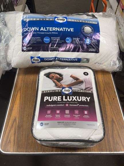 LOT 122 - Sealy Down Alternative Cooling Pillows 2-Pk & Sealy Pure Luxury Queen Size Mattress Pad
