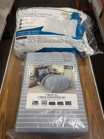 LOT 128 - PureLux Queen Gel Memory Foam Pillows 2 Pk & Twin XL 5-Pc Comforter Set *NIB