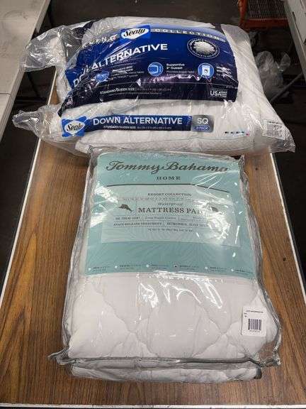 LOT 129 - Sealy Down Alternative Cooling Pillow 2-Pk & Tommy Bahama Queen Size Water Proof Mattress Pad