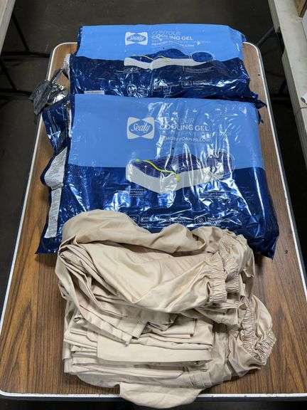 LOT 136 - (2) Sealy Contour Cooling Gel Memory Foam Pillows & Kirkland Sig. Khaki Sheet Set