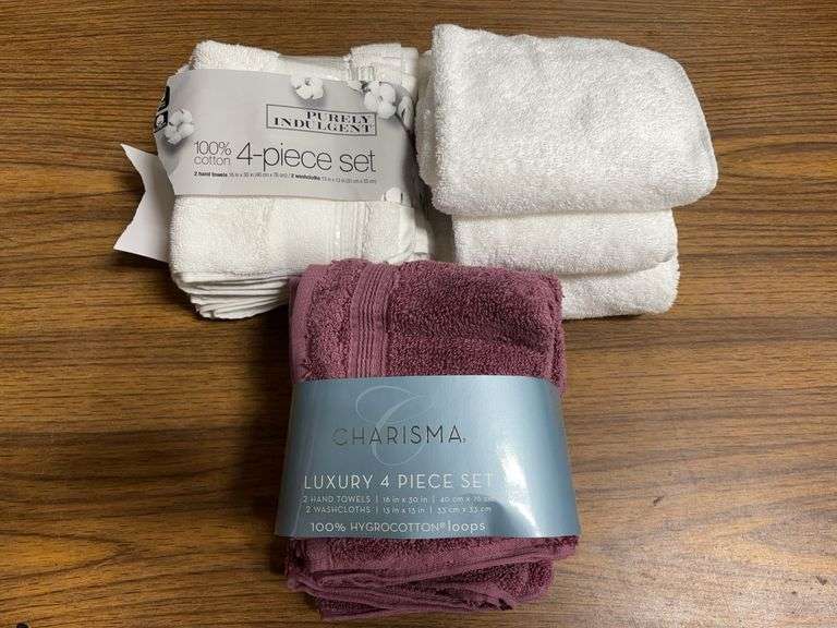 LOT 143 - Assorted White/Burgundy Bath/Hand Towel Set