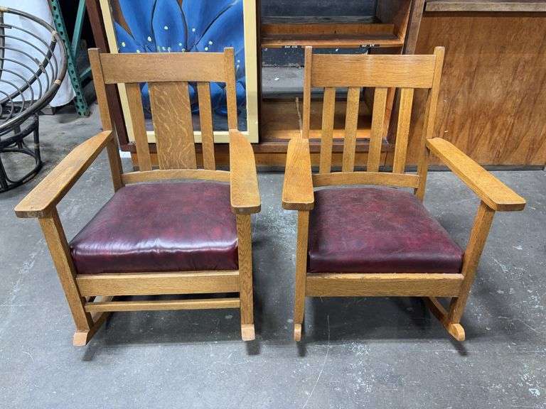 LOT 13B - (2) FS Harmon Mission Style (Oak?) Rocking Chairs