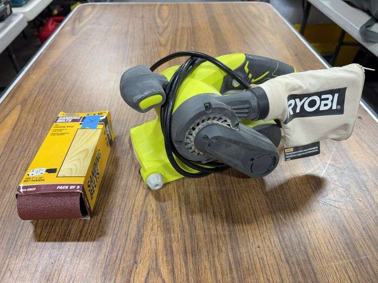 LOT 219 - Ryobi BE319 Corded Portable 3 x 18 Belt Sander w/ Extra Belts