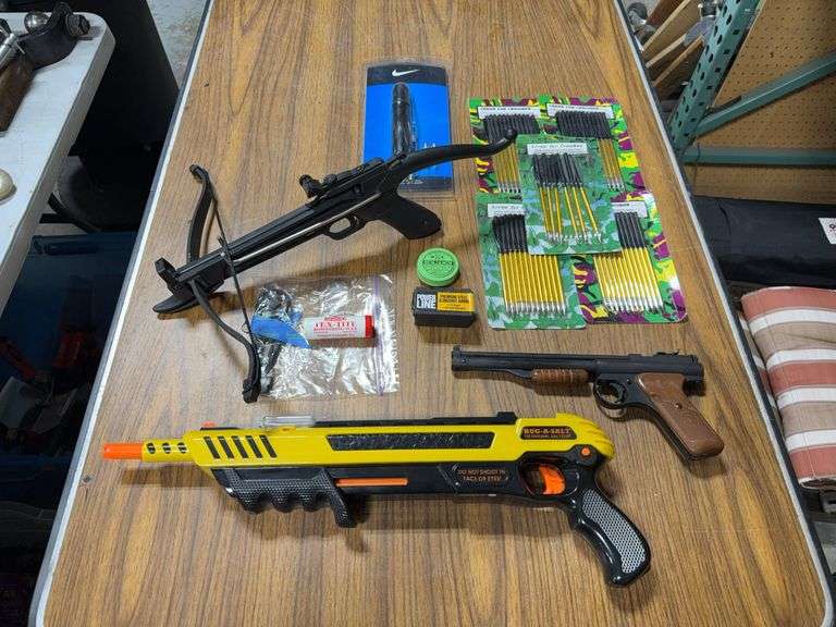 LOT 249 - Mini Cross Bow w/ Arrows & Extra String/ A-Salt Gun/ Pump Style BB-Gun + More