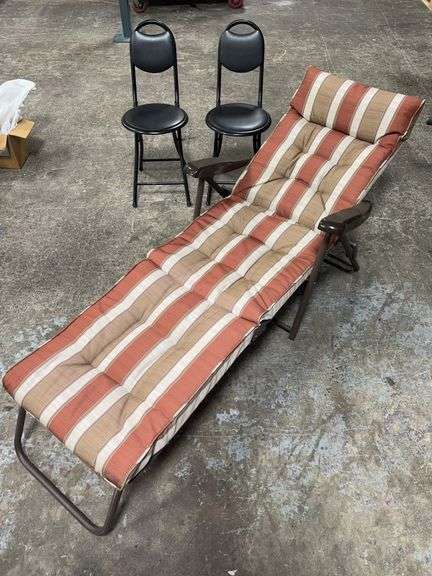 LOT 298 - (2) Small Folding Camping Chairs and Folding Patio Lounger Chair